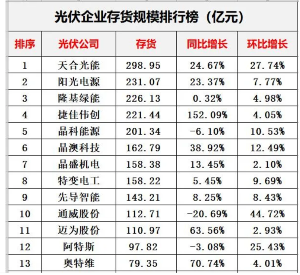 截止2024年3月末,113家光伏上市公司存货规模合计达3419.94亿元,同比增长15.86%,环比(2023年末)增长了9.75%。