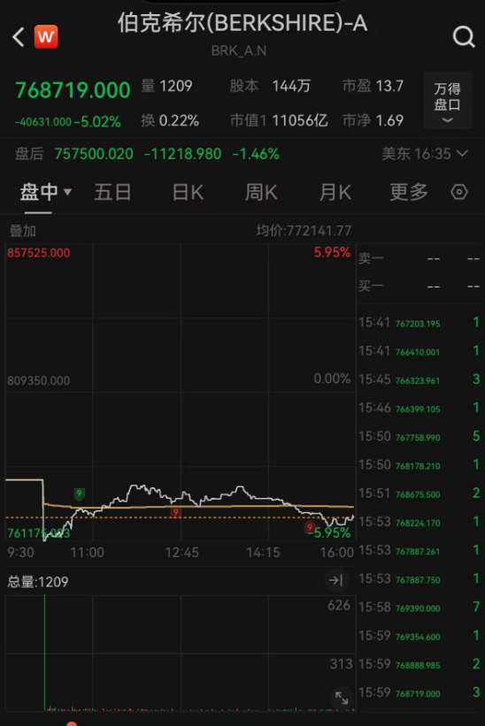 值得一提的是,伯克希尔-A跌超5%,巴菲特将于2025年底卸任首席执行官一职。