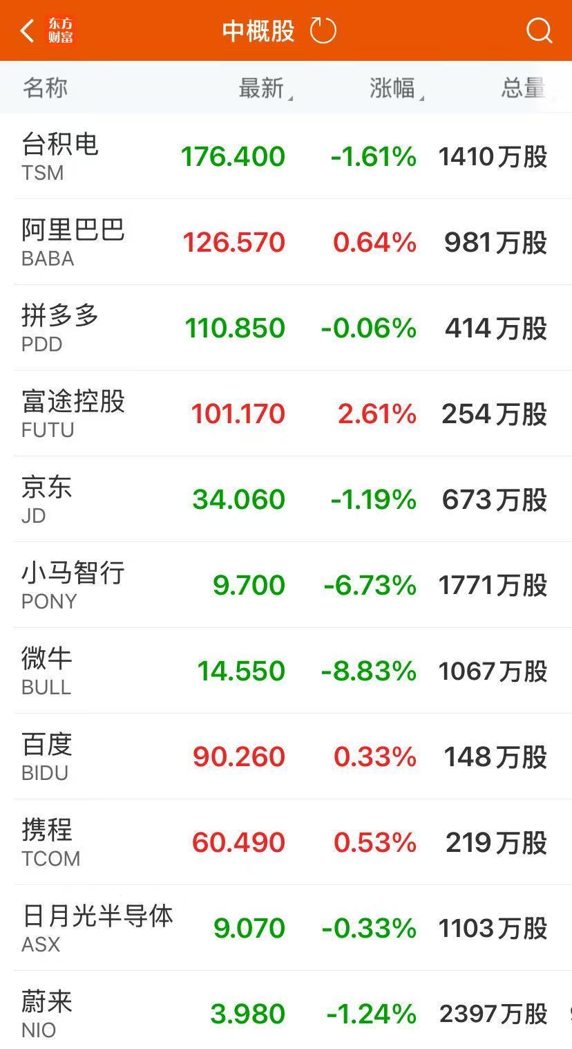 热门中概股涨跌不一,纳斯达克中国金龙指数跌0.04%。