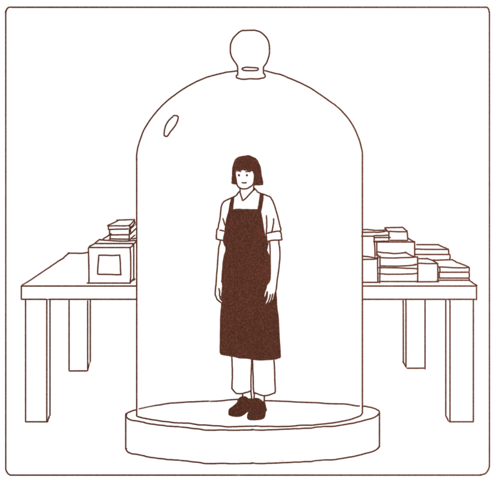 转正考核的时候,店长评价严歌“身上好像有一个玻璃罩子”。严歌所在的书店除了她还有三位店员,都是女性,都已经结婚生子。她们做过服装店、做过夜场。闲暇的时候,她们在一起聊自己的人生,和老公吵架、孩子上学,严歌插不上话。她从未向她们讲自己的烦恼。