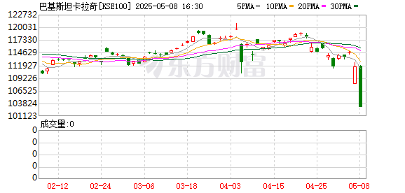 5月8日,受到印巴冲突影响,巴基斯坦股市暴跌,KSE-100指数暴跌超8500点,跌幅超过7%。根据交易所规定,市场因此暂停交易一小时。