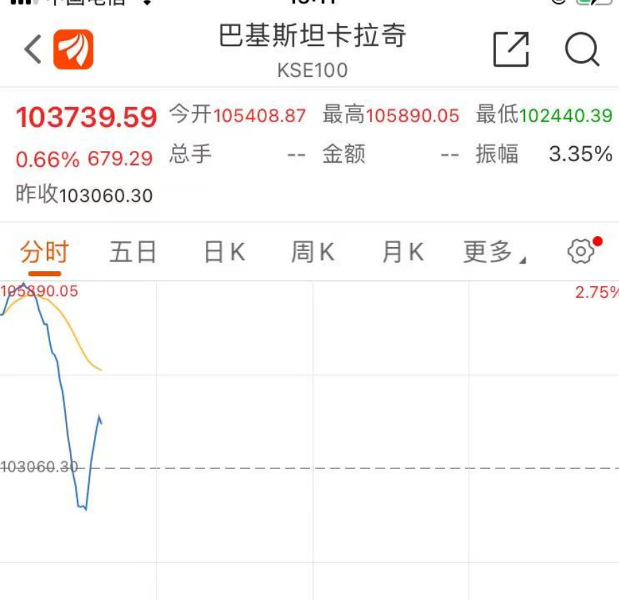 值得注意的是,今日巴基斯坦股市KSE-100指数大幅高开,一度大涨近3%,不过之后跳水下挫,目前涨幅收窄至0.66%。