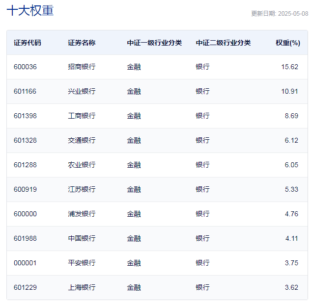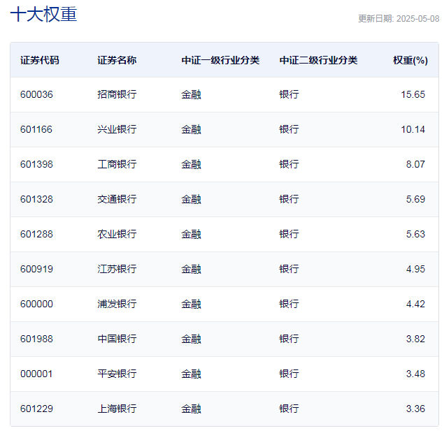 中证银行指数发布于2013年7月15日,反映中证全指指数样本中银行行业公司证券的整体表现,为投资者提供分析工具。成分股分布于银行业,平均市值较大,持仓集中度较高。