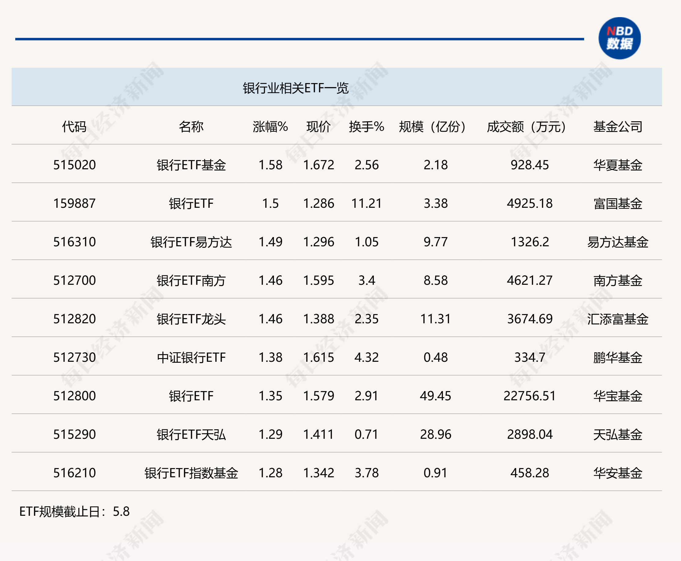 点评:银行ETF(159887)今日上午涨幅为1.5%,该ETF规模为3.38亿份,半日成交金额达到4925.18万元,其追踪的是中证800银行指数。