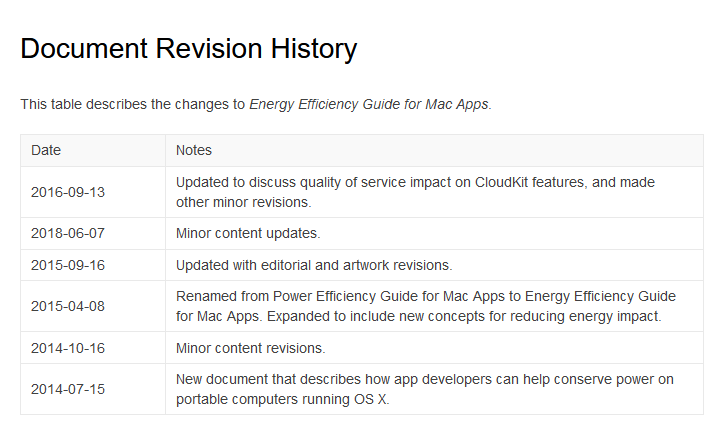 另外根据文档日志显示,该文档最初更新于2014年7月,最后更新于2016年9月。也就是说苹果这套“解决方案”已经搞了大概10年。在这10年间,应用和系统之间的磨合已经达成了默契,每个程序应该跑大核或者小核已成定数。