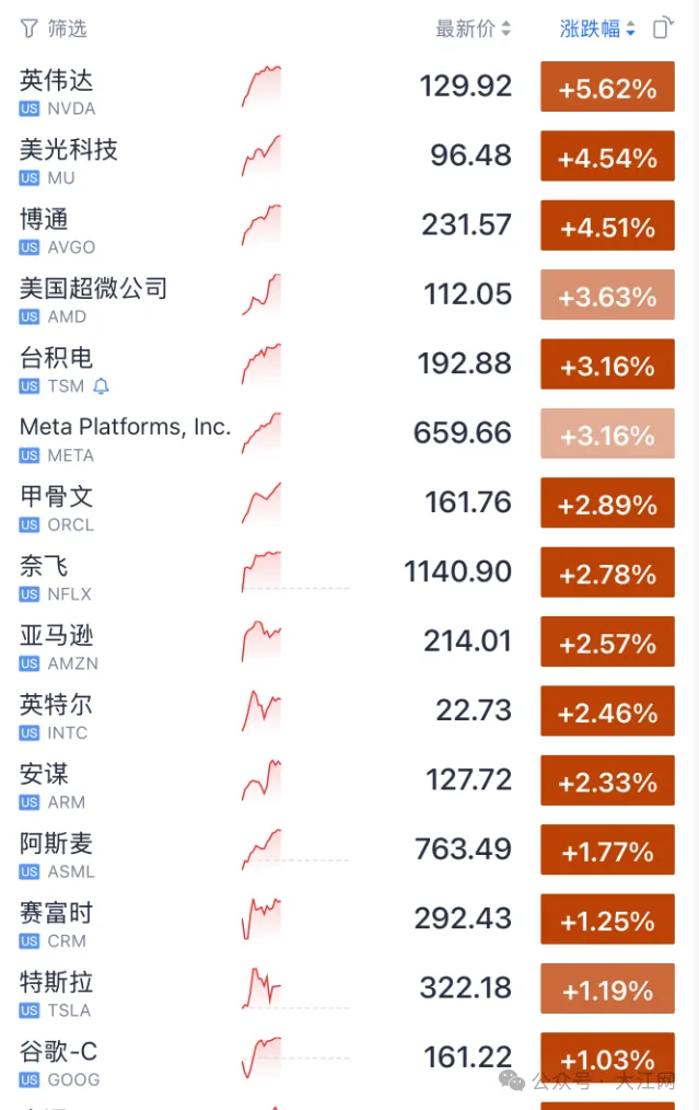 科技股集体大涨,英伟达涨超5%。