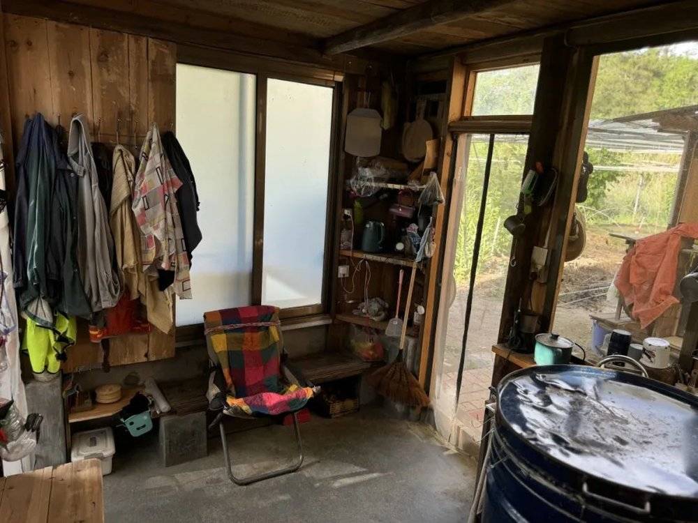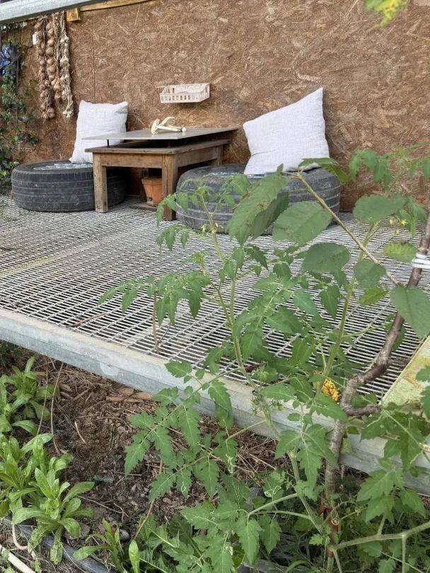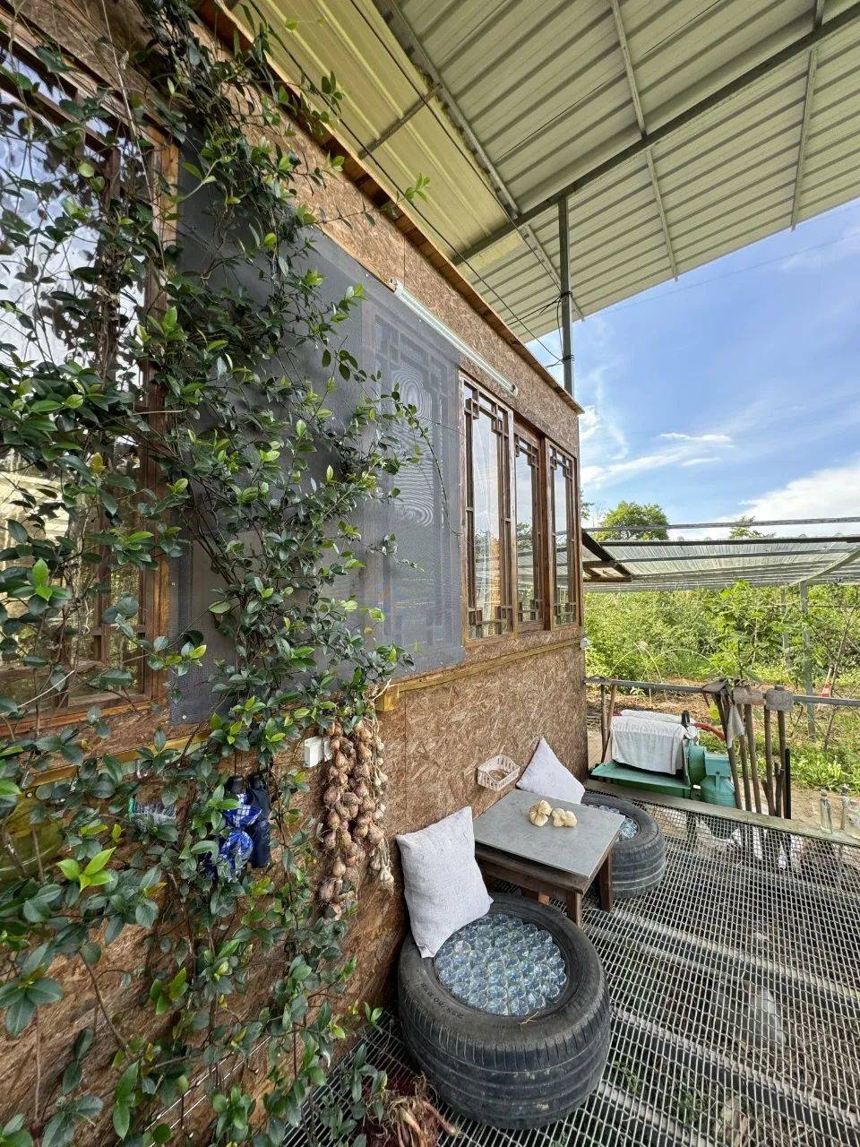 ●“一号”现在的样子。对比三年前,有几处变化:第一,受不了蚊子,窗户增加了窗纱;第二,门边的风车茉莉长起来了,明年就能长成拱门;第三,两个轮胎沙发中间的小几上,有刚刚收获的两个鸡纵菌;四、墙上挂着今年收成的蒜头和洋葱。