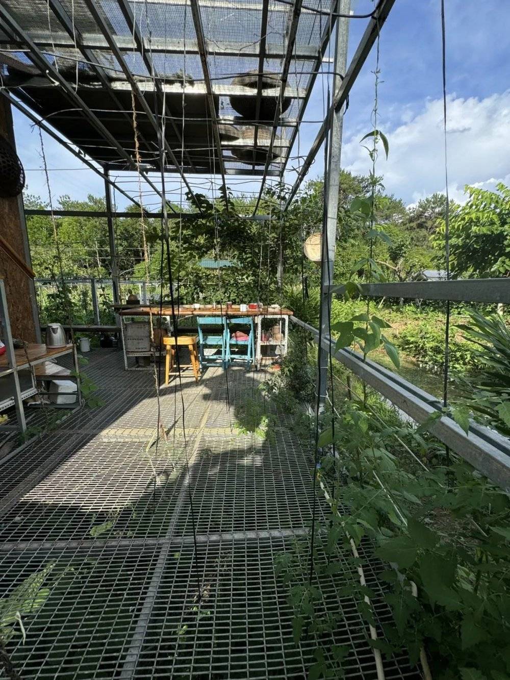 但“一号”太大,大得让人忐忑。尽管整体悬空,极少硬化土地,但是万物生长靠太阳,遮住阳光的土地,草都不长。我曾经试过猪屎网下种菌菇,两年间买了好几种菌种,都没有成功。很惭愧,为了一个人的生活,制造这么大生命禁区。