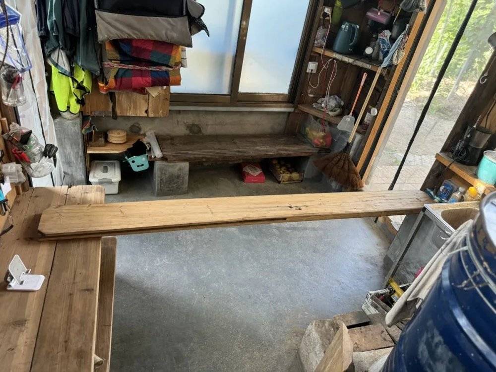 ●搭上长木板,可供七八人围炉,拿下来就可以跳绳,平时我大多会在这里支一把单人躺椅。