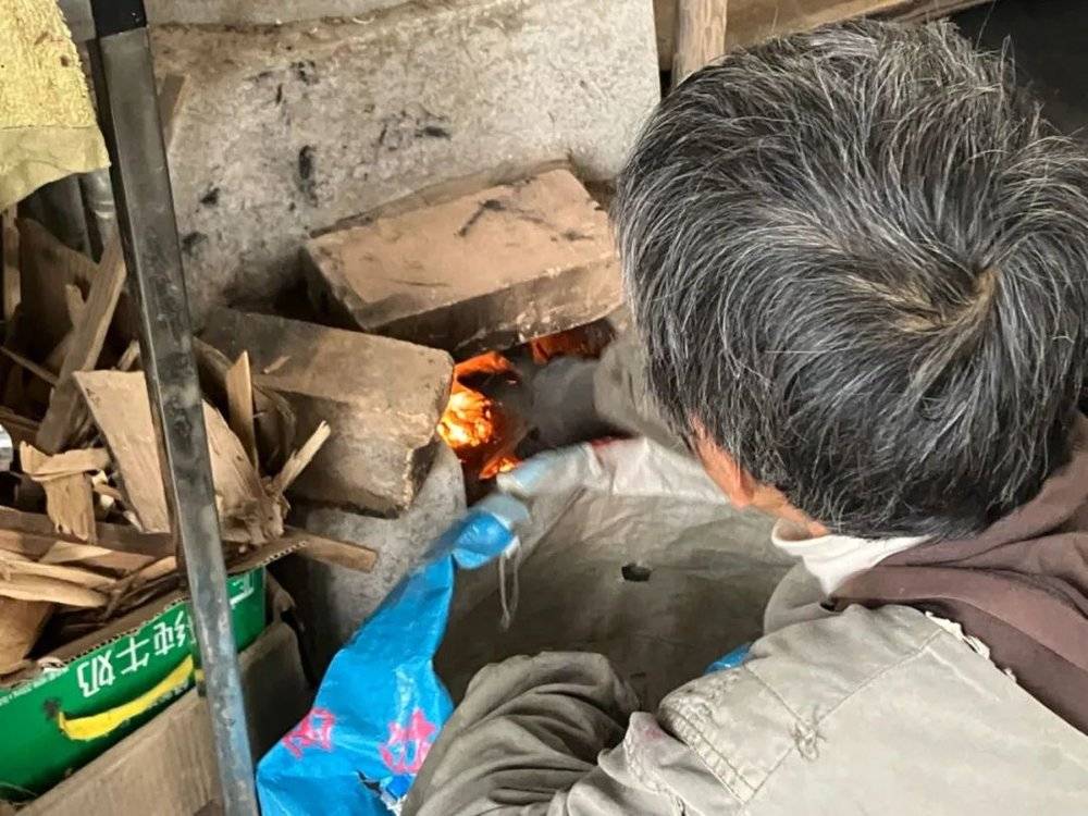 ●冬天,给“二号”的火箭炉填柴。摄影:王昊