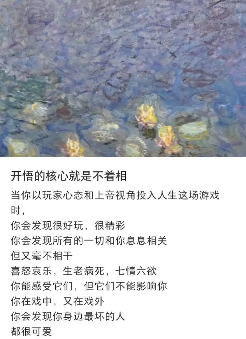 开悟的理论一综合,基本把人生的终极问题都解决了,大的问题建议是想开点,大家终有一死。小的事情建议是强化自我,佛漏哈特,把能做的都做了。