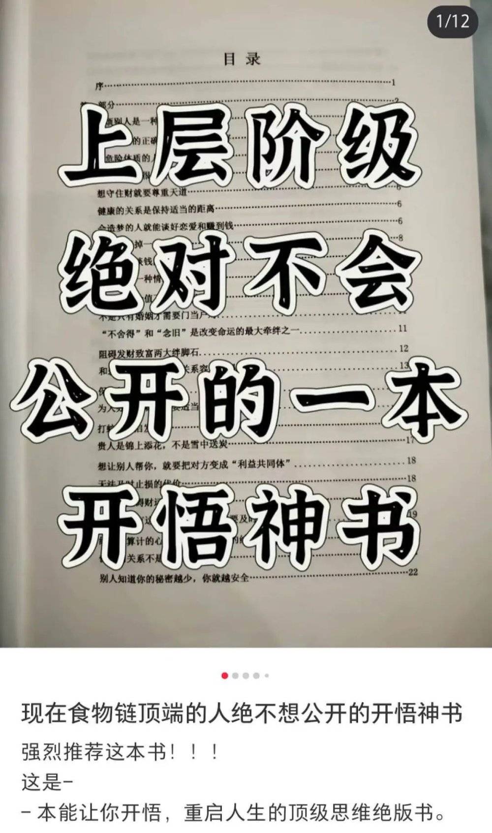 “一本上层阶级绝对不会分享的开悟神书”,售价29块9,最吸引人的一章是“阻碍发财致富的两大绊脚石”。