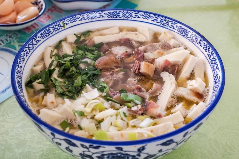 小炒泡馍深受年轻人喜欢,由于配上了黄花菜、木耳、豆腐干、青菜等,炒制时再加入足量的辣椒和醋,火候足足的,牛羊肉汤的香味和酸辣爽口的滋味混合,吃起来相当过瘾。