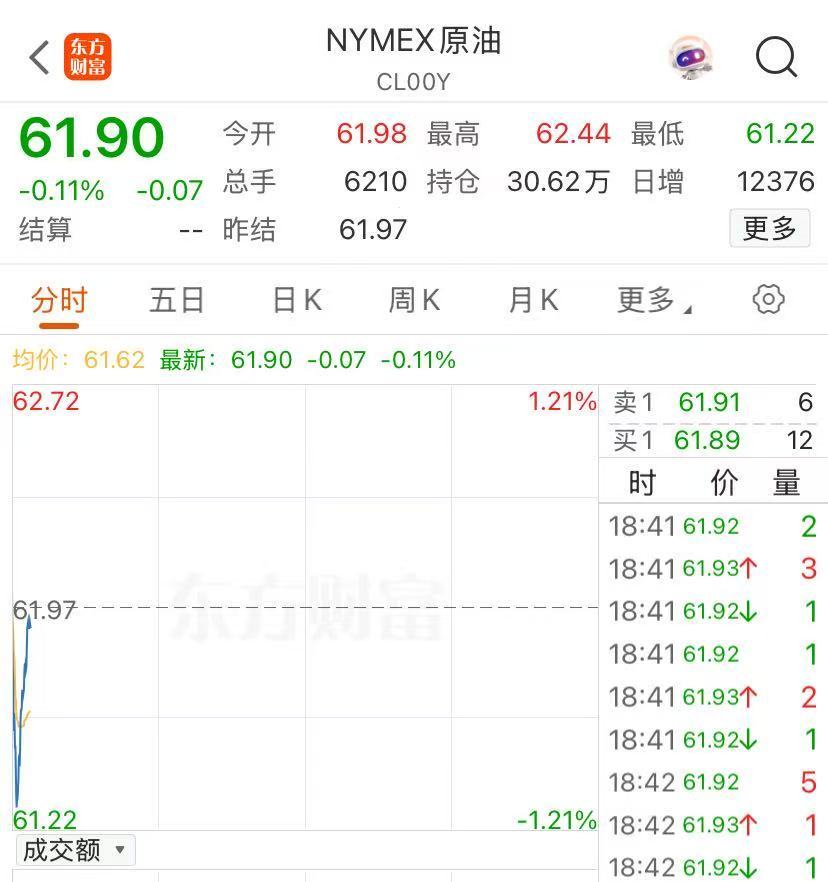 WTI原油期货跌幅一度扩大至1%,报61.30美元/桶。