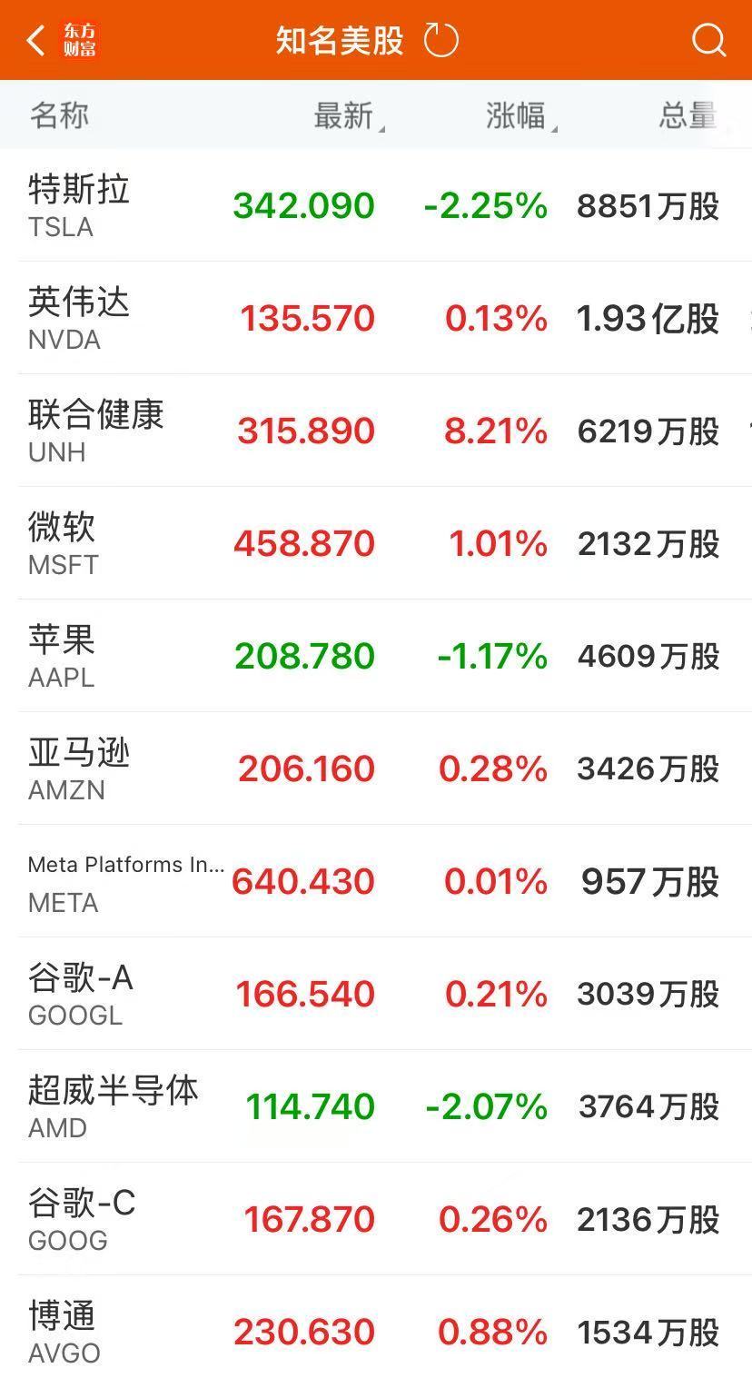 医药、贵金属板块涨幅居前,诺瓦瓦克斯医药涨超15%,联合健康涨超8%,Moderna涨超6%,美国黄金公司涨超5%,埃氏金业、金田、吉利德科学、渤健公司涨超3%。太阳能、汽车制造、油气板块跌幅居前,第一太阳能跌超7%,墨菲石油跌超2%。