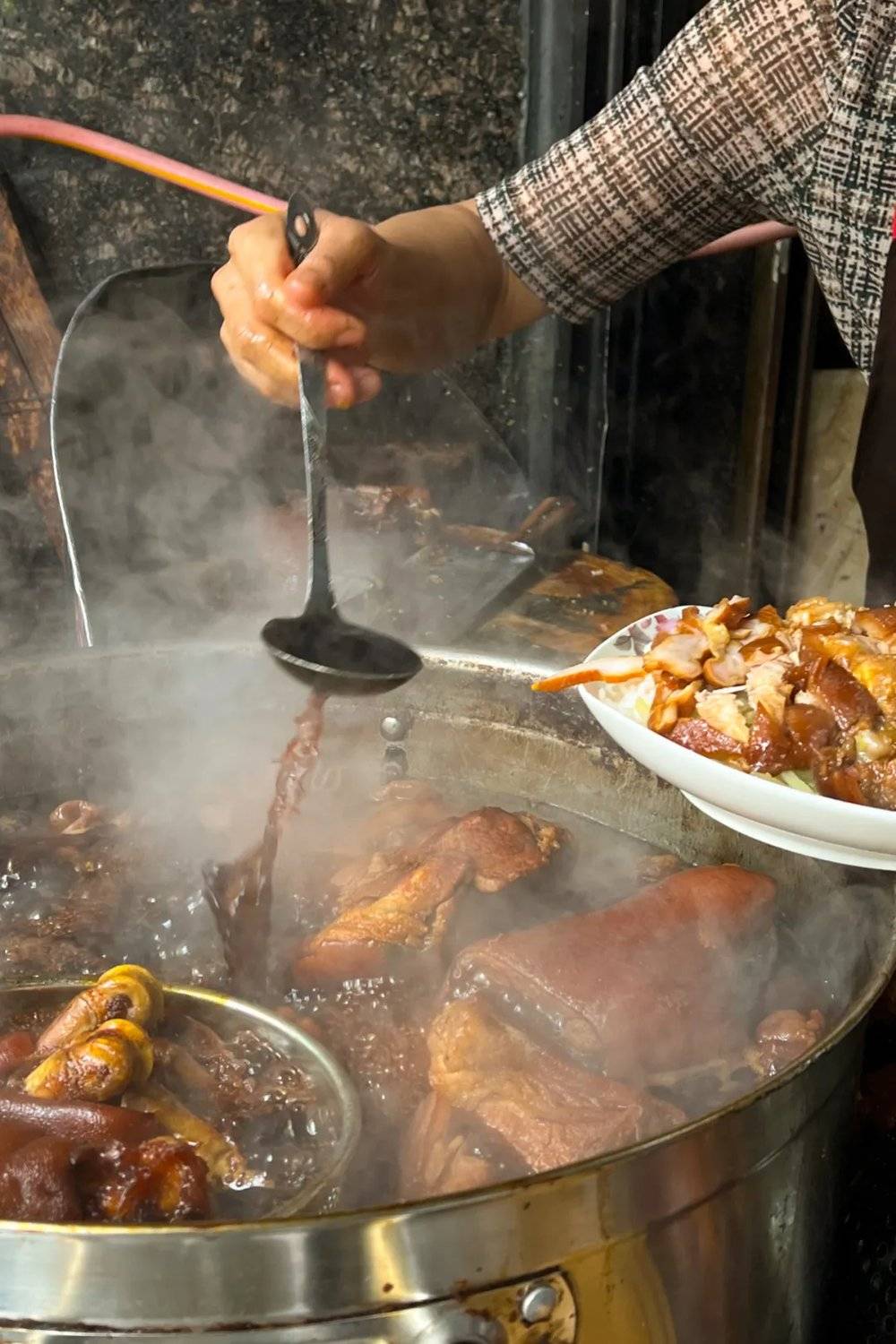 热腾腾的大锅里,肉与汤汁一同翻滚。摄影/邹婉怡