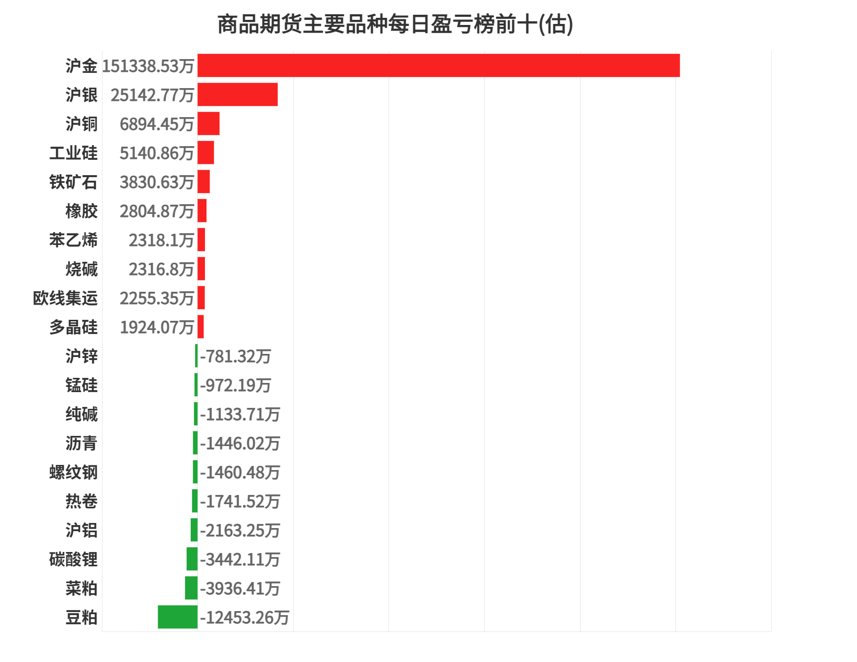 今日商品期货上榜机构席位中沪金盈利第一,为151338.53万元。