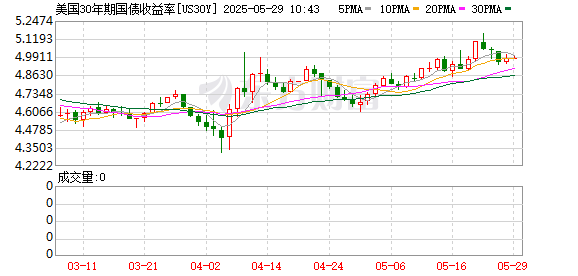 短短不到一天后,5月28日,日债标售结果不佳,受日债抛压影响,美债重启跌势,美债收益率再度走高。10年期美债收益率重新逼近4.5%,30年期美债收益率再度向5%关口发起冲击。
