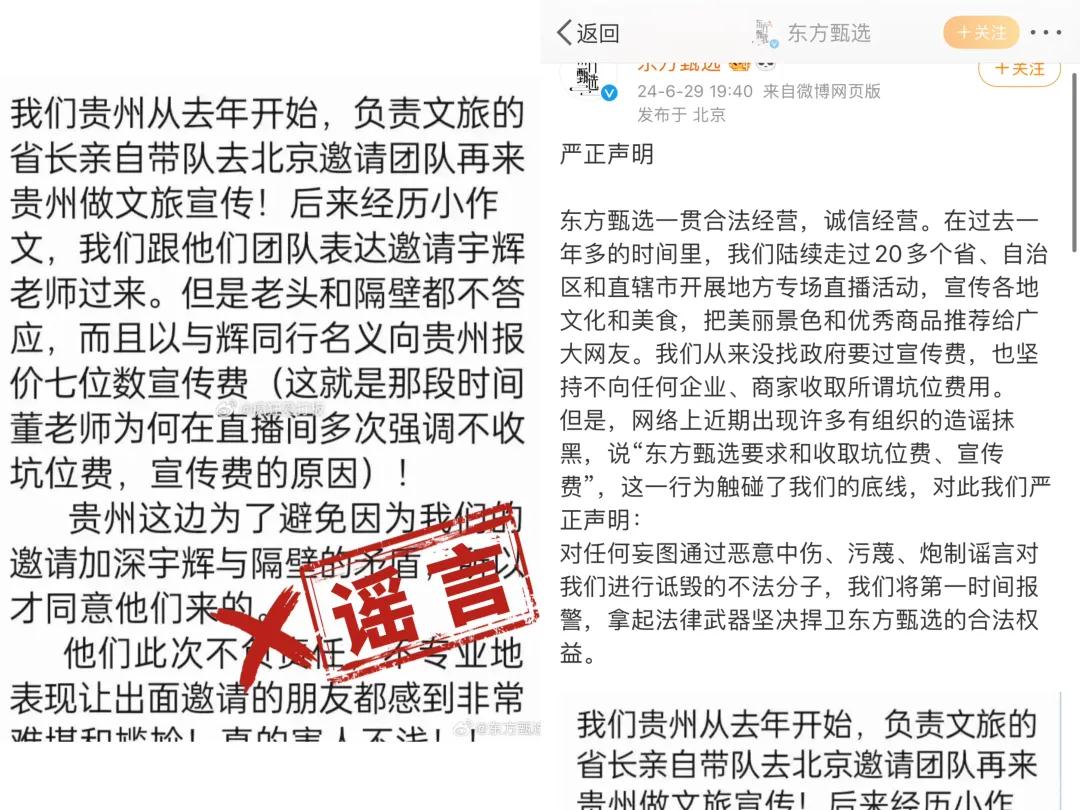 就在大家以为东方甄选会以此事进行回复时,三天后,东方甄选回应的居然是辟谣“东方甄选坑位费”的问题。