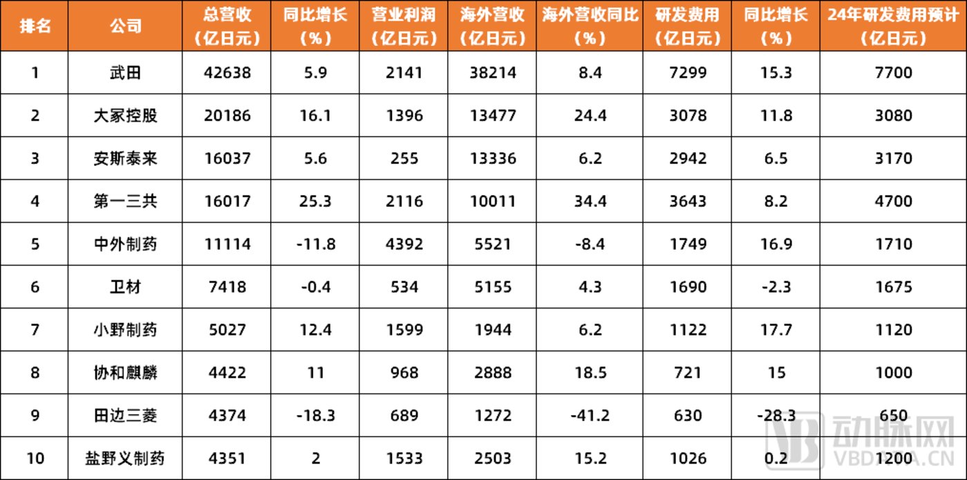 图2.2023年4月-2024年3月日本十大药企经营情况(数据来源:AnswersNews )