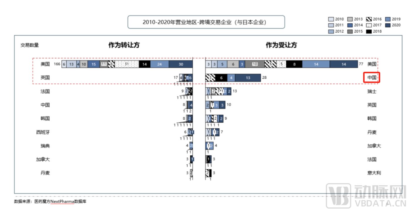 图4.2010-2020年营业地区-跨境交易企业【日本】(图片来源:医药魔方)