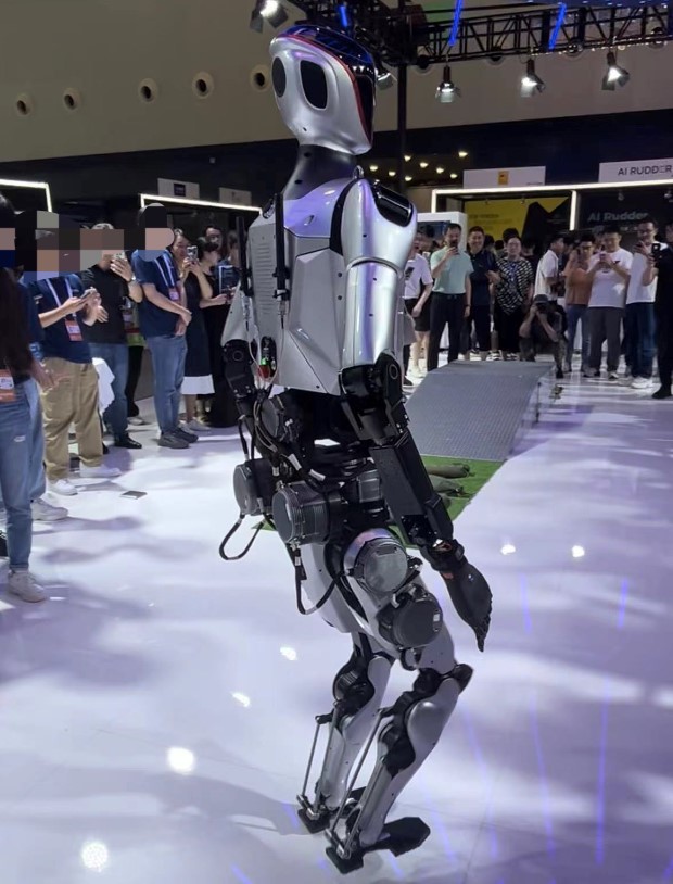 185cm的身高、高度仿生的躯干构型,以及原地后空翻、稳健上下坡、敏捷避障等技能,使得人形机器人展台前吸引众多观众驻足围观,甚至还有不少投资人士过来观察赛道,寻求项目合作。