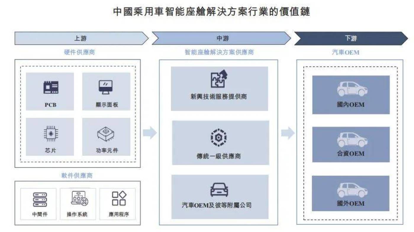 以公司收入占比近9成的智能座舱解决方案为例,公司处于产业链中游,上游为芯片等原材料供应商,下游则是汽车制造商。