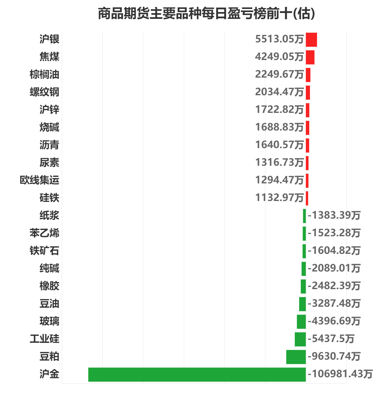 今日商品期货上榜机构席位中沪银盈利第一,为5513.05万元。