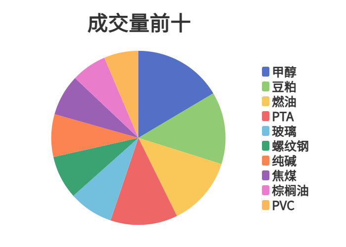 市场成交量前十和持仓量前十如下图所示: