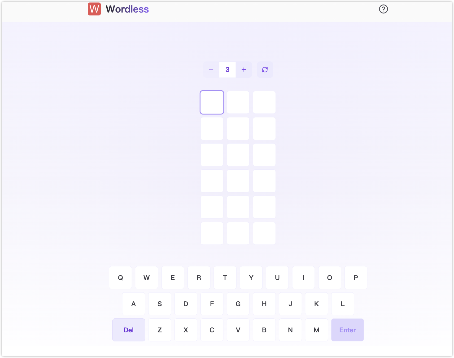keywords: “wordless,wordly, wordle, game, puzzle, word, words, letters, play, online, guess,unlimited”,