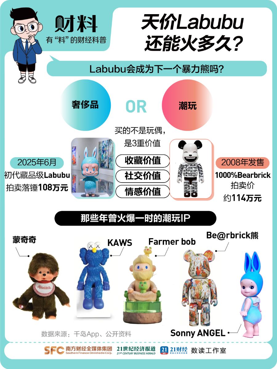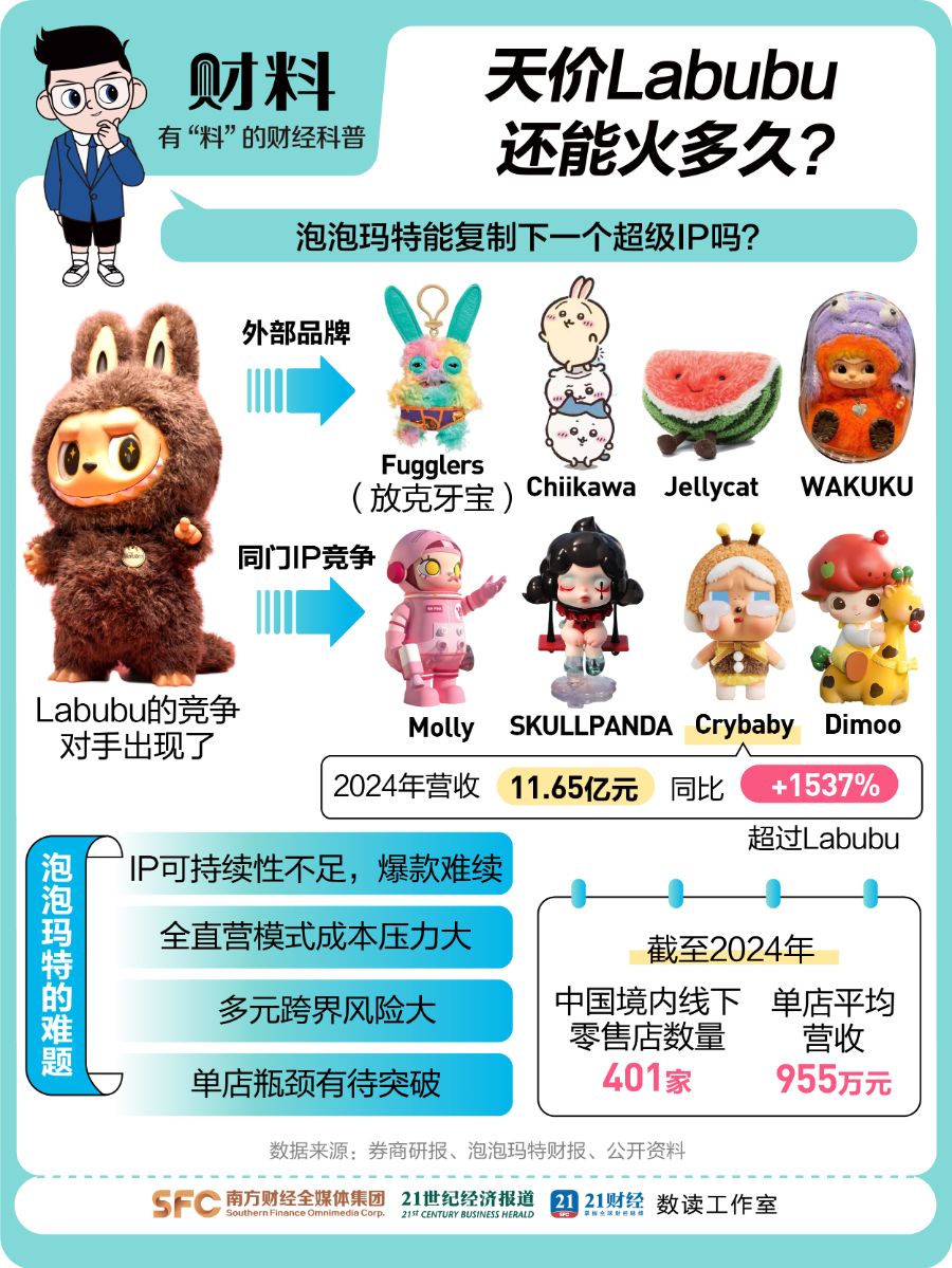 Labubu的对手也出现了!外有国际品牌Fugglers、Chiikawa、Jellycat等虎视眈眈,内有同门IP MOLLY、Crybaby等相互竞争。3000亿市值泡泡玛特有没有泡沫?天价Labubu能火多久?谁将成为下一个“Labubu”?本期《21财料》为你解码!