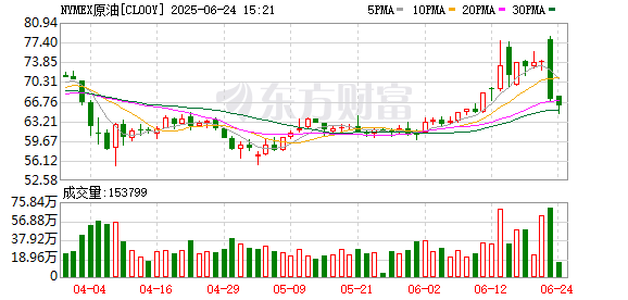 而周一(6月23日)纽约尾盘,布伦特原油期货最终下跌7.62%,报69.73美元,WTI原油期货跌8.95%,报67.23美元。