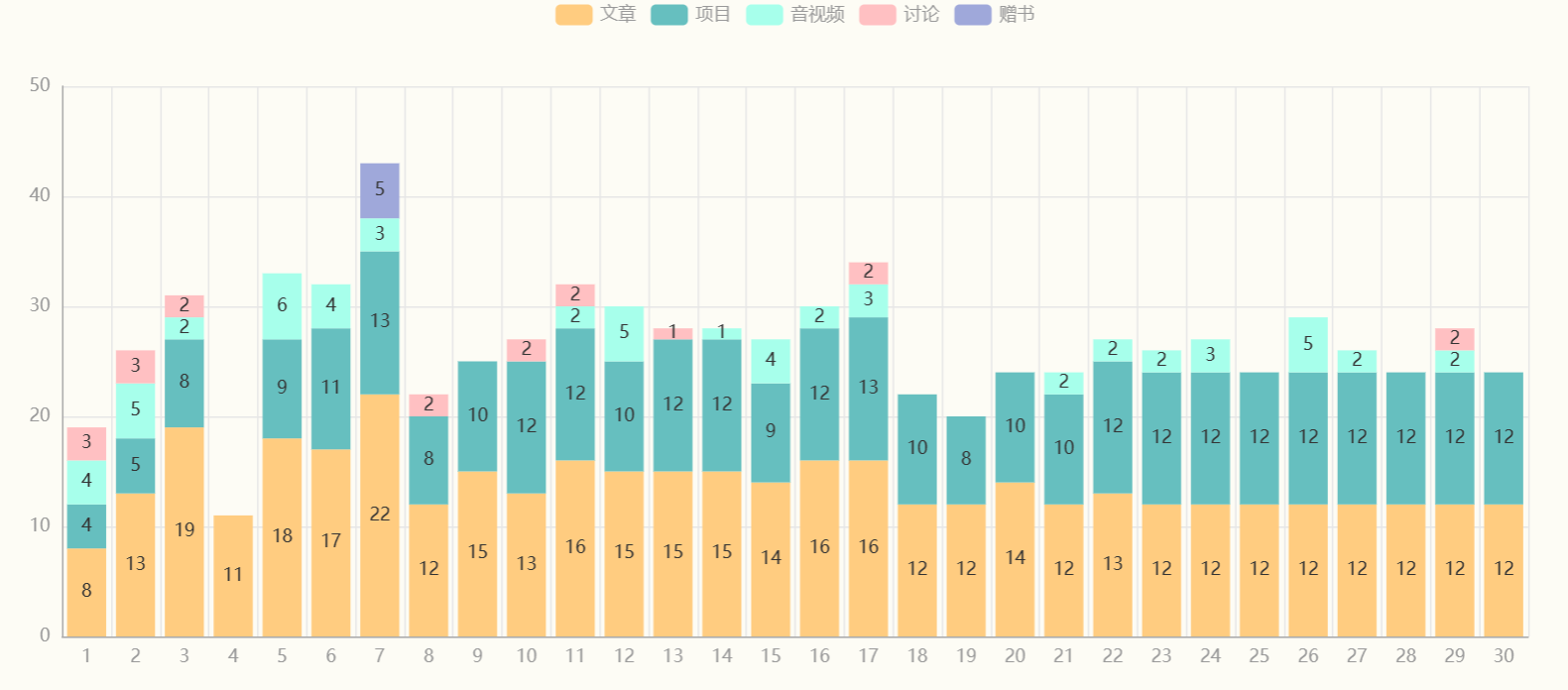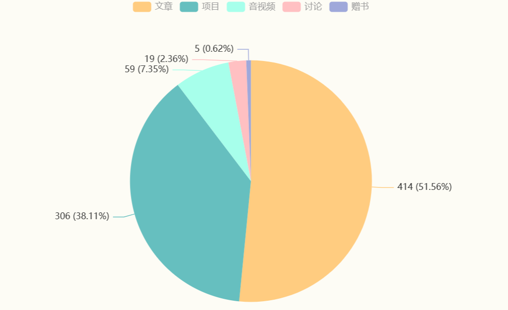 可以看出我们是以文章和项目为主,而且数量非常之多(约占 90%)。