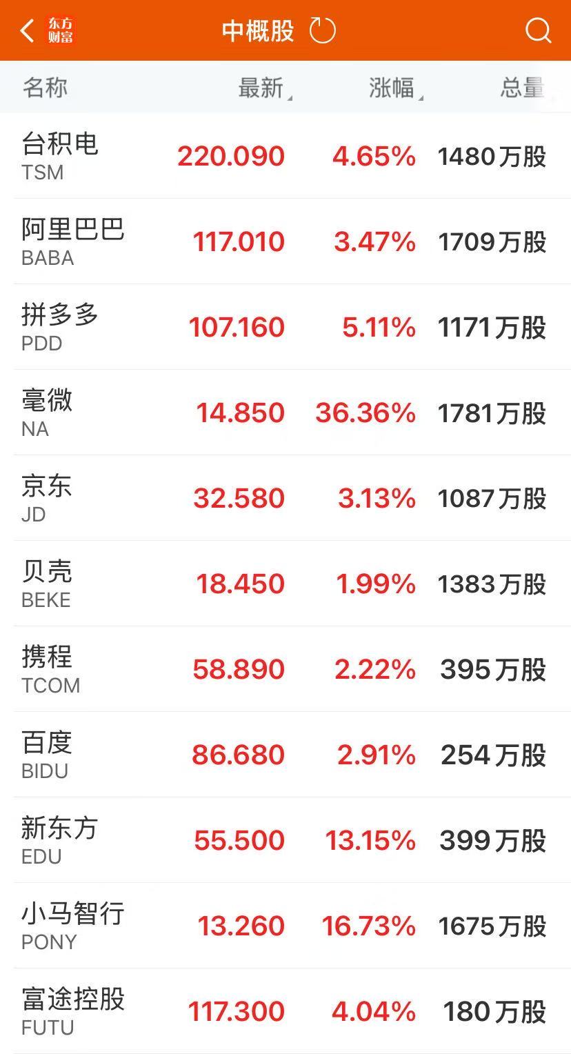 热门中概股普涨,纳斯达克中国金龙指数涨3.31%,创5月13日以来最大单日涨幅。