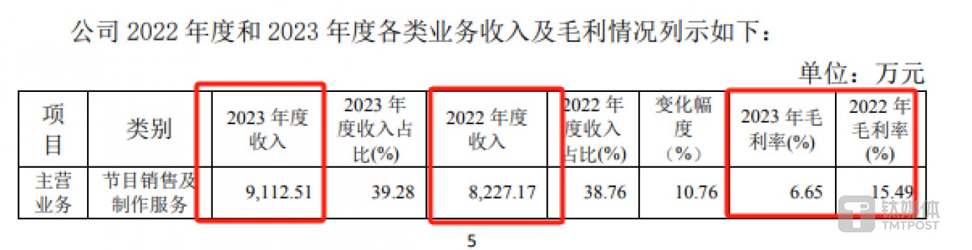 节目销售及制作服务MCN运营一直都是中广天择收入最大的业务,2023年该业务的收入为9112.51万元,同比增长10.76%,毛利率为6.65%(2022年该数据为15.49%),节目销售及制作服务MCN运营明显增收不增利。
