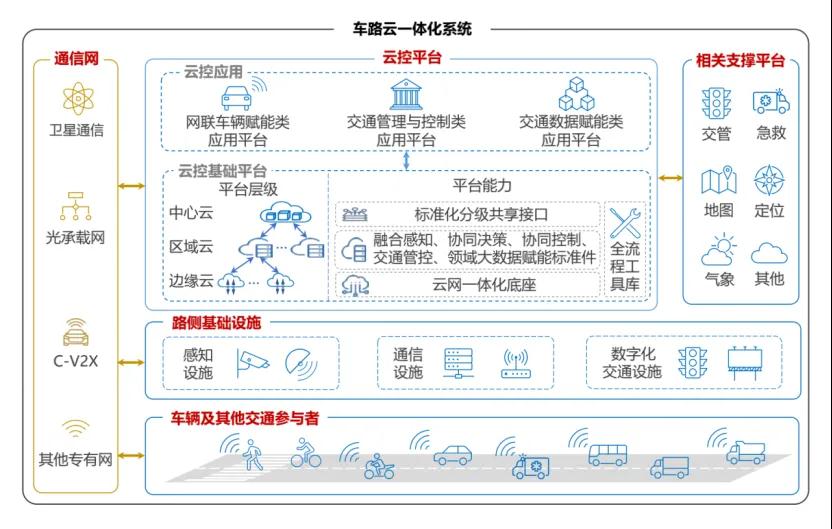 因此,车路云一体化作为安全系数更高的另一条路被放到前台,其关键是人、车、路、云,对应的是交通参与者、车载终端、路侧设施和云计算的融合与联动。