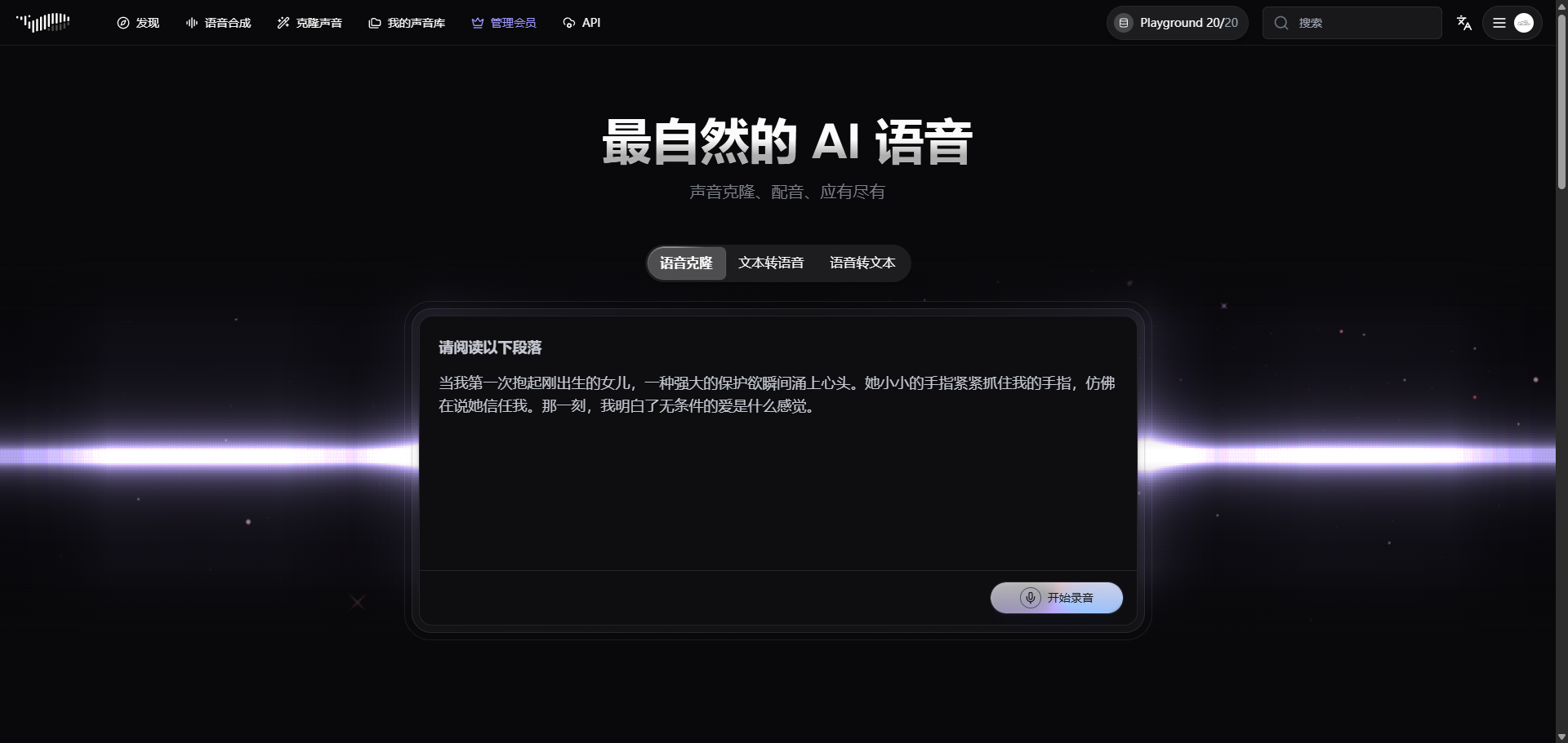 它支持了三种模式: 语音克隆,文本转语音,和语言转文本,且支持 API 调用,很方便支持我的使用场景。