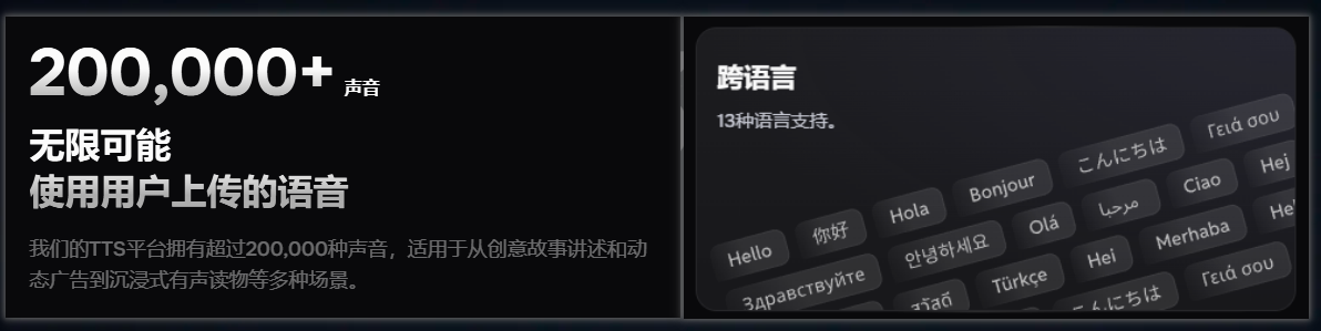 而且它支持 200000+ 种声音,支持 13 种语言支持。