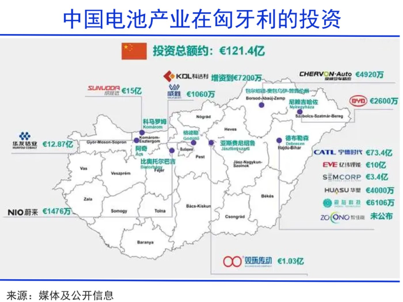 此前,为靠近欧洲主流市场,缩短产业链,并更为符合欧盟的贸易规定,宁德时代、比亚迪、亿纬锂能、蔚来、欣旺达等纷纷进入匈牙利,投资总额高达121亿欧元。这个欧洲小国与中国的利益绑定更为紧密,甚至有了些挑战德国“欧洲汽车一哥”的底气。