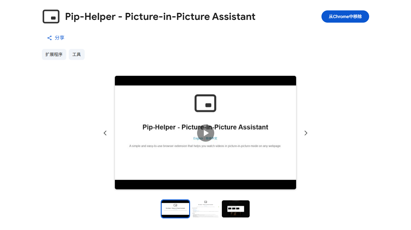 Pip-Helper 一款简单易用的画中画浏览器扩展,帮助你在任何网页上都能使用画中画功能观看视频。