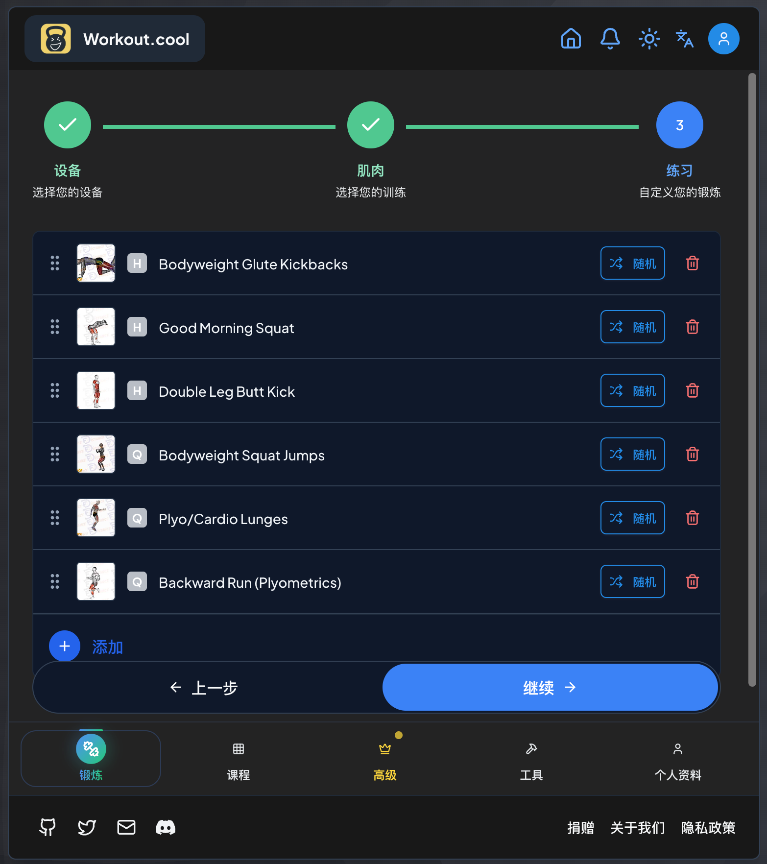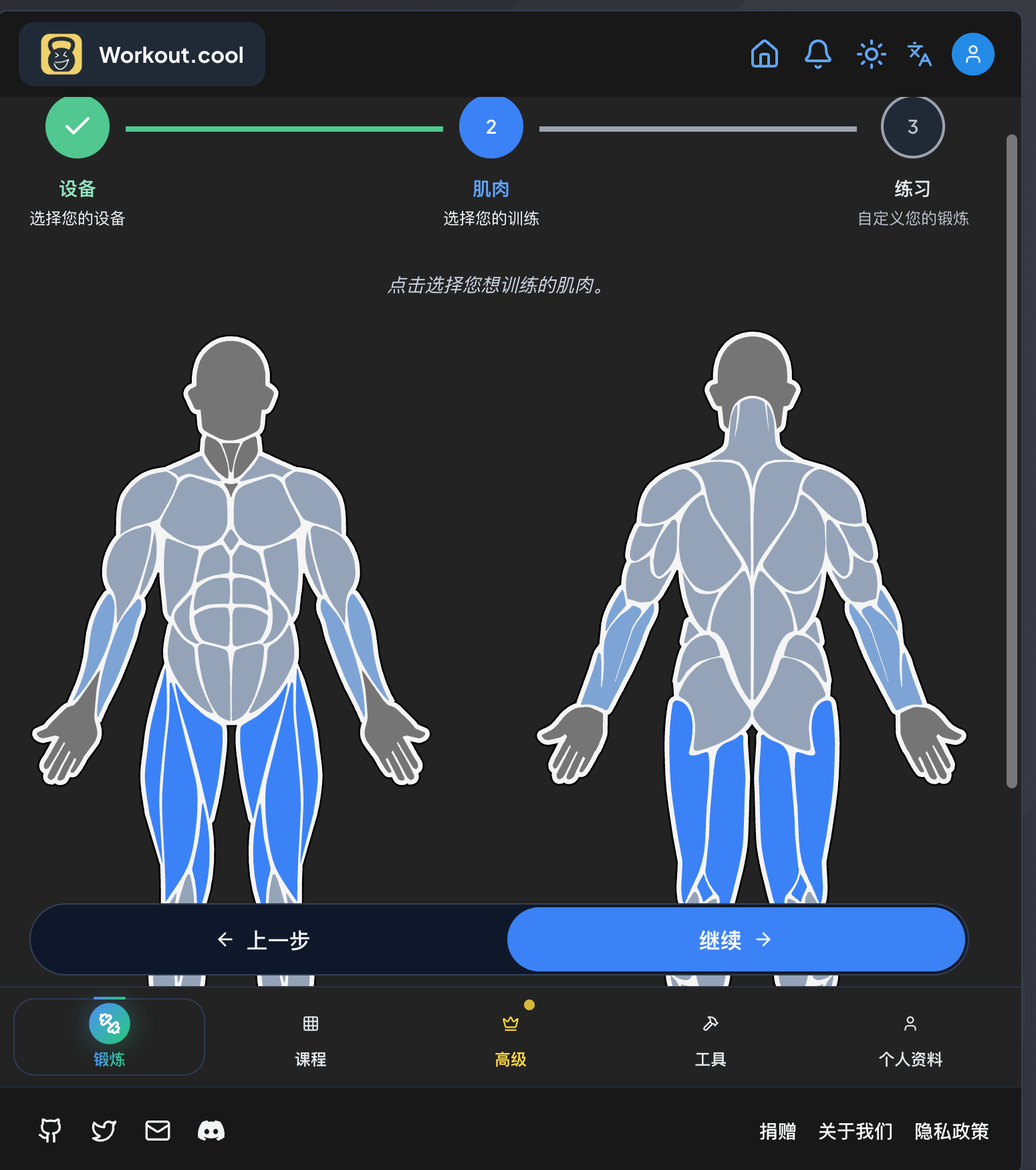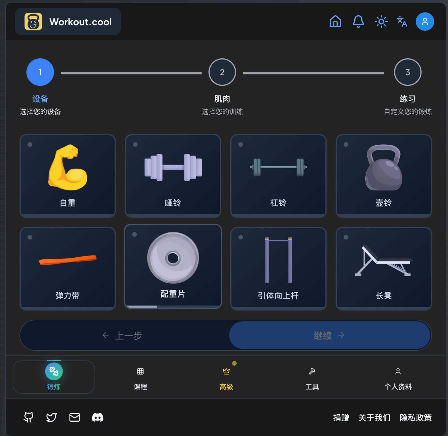 免费且开源的的锻炼计划网站 https://workout.cool/