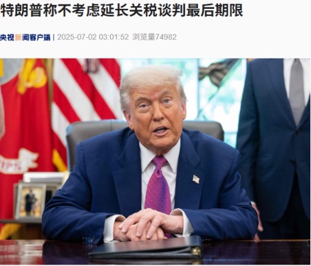 据央视新闻,当地时间7月1日,美国总统特朗普在“空军一号”总统专机上表示,他没有考虑延长各国与美国谈判贸易协议的7月9日截止日期,并对与日本能否达成协议表示怀疑。