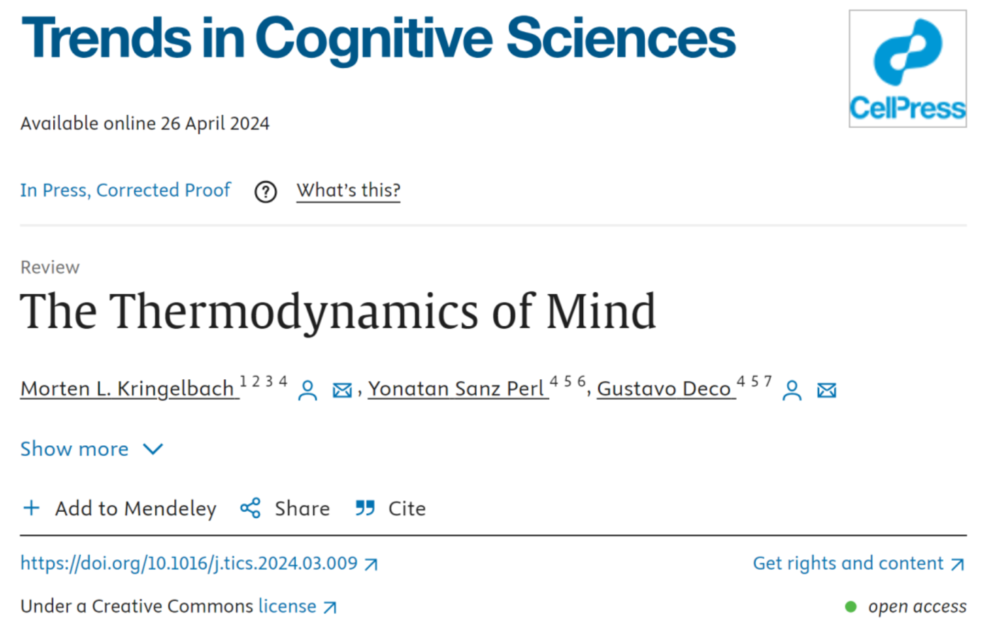 ▷Kringelbach, Morten L., Yonatan Sanz Perl, and Gustavo Deco. “The Thermodynamics of Mind.” Trends in Cognitive Sciences (2024).