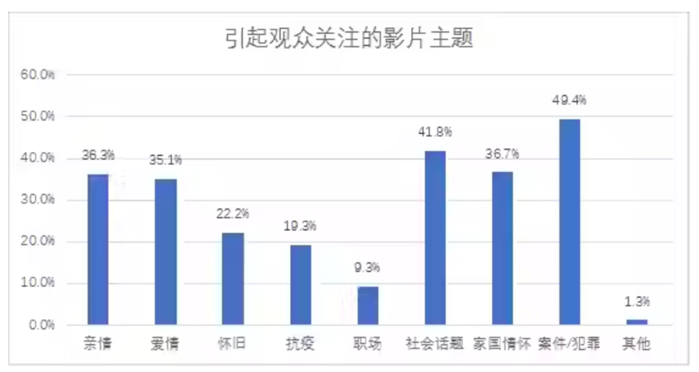 早在中国电影报发布的2021年《中国电影观众调查报告》中就曾显示,观众最感兴趣的是案件/犯罪题材的影片,占比49.4%,但2021年公映的犯罪类型影片数量仅占全年总量的3%,处于严重的供需不平衡状态中。但市场的需求还是传导到了从业者的眼中,这或许是2023年悬疑犯罪电影迎来井喷的原因之一。