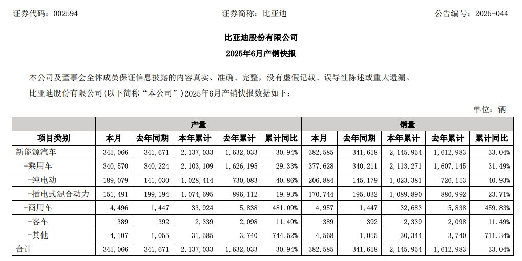 按照规划,比亚迪2025年销量目标为550万辆。今年上半年,比亚迪新能源汽车累计销售约214.6万辆,完成年度销量目标近40%。