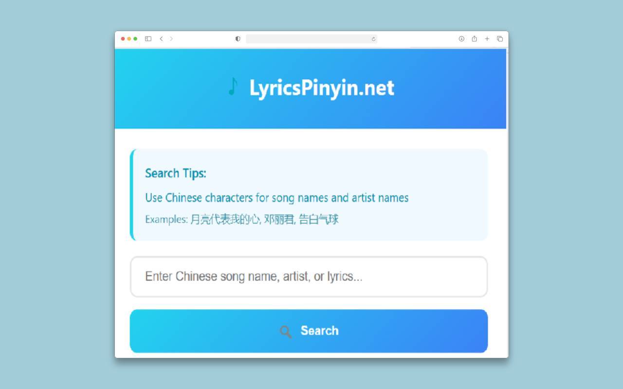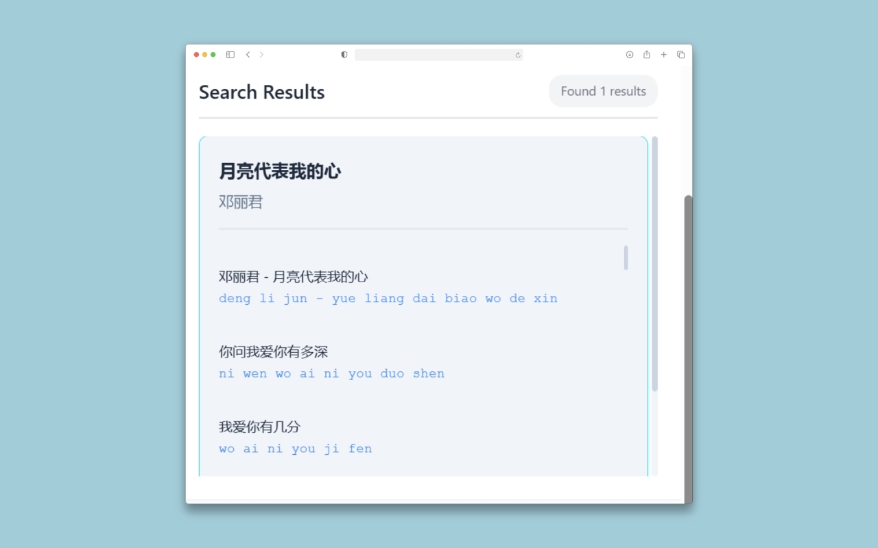 这个扩展是根据歌名找歌词,还会翻译成拼音双语 特别适合海外的学习中文歌曲用