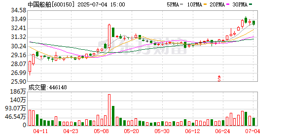 截至4日A股收盘,中国船舶股价下跌1.35%,中国重工股价下跌0.86%。
