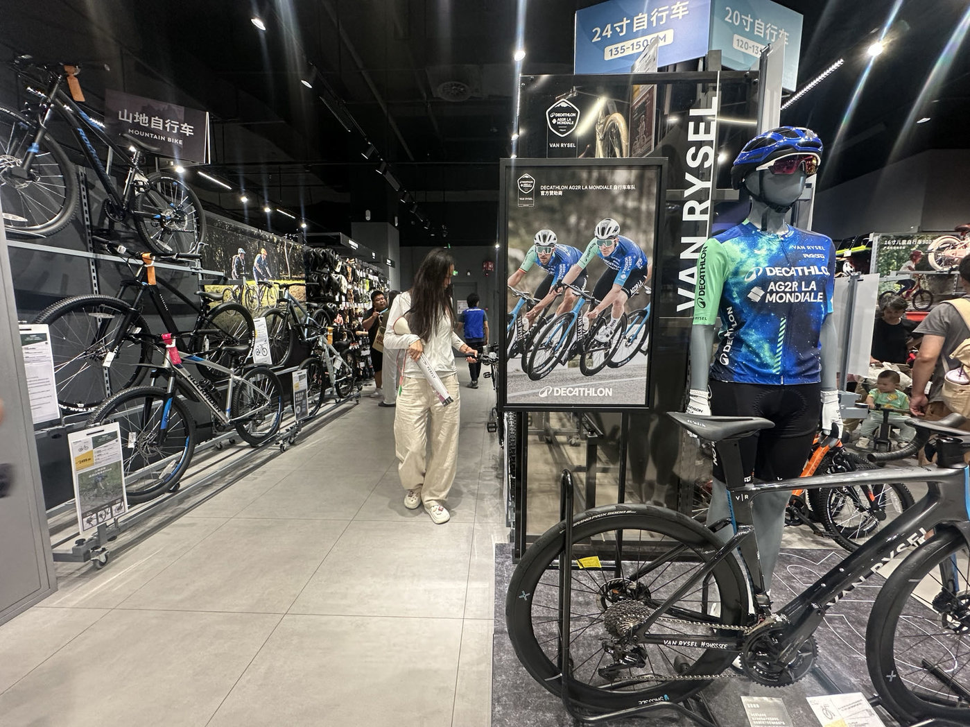 这一点,在迪卡侬五棵松万达广场店也有所体现,你会发现跑步、攀岩、公路自行车,尤其是公路自行车运动装备空间及其维修工作室三大细分赛道加大了更大面积推广。