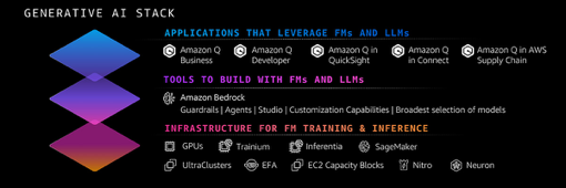 Amazon Bedrock提供了利用LLM和其他基础模型轻松快速地构建、部署和扩展生成性AI应用程序的工具。