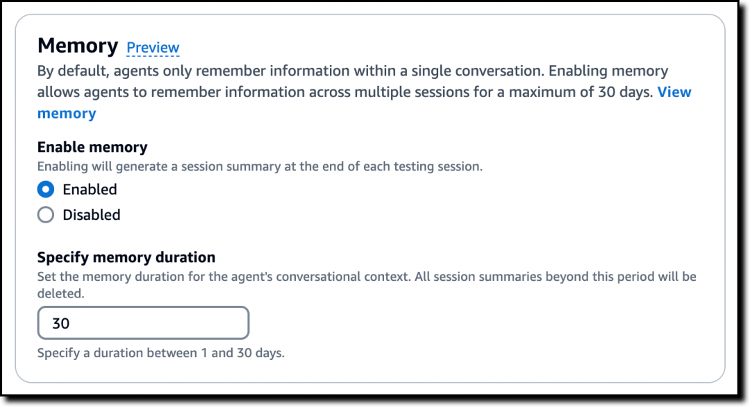 例如,企业用于处理客户反馈的智能体现在可以知道与同一客户之前和正在进行的交互。每个用户的对话历史和上下文都安全地存储在唯一的内存标识符(ID)下,确保用户之间的完全分离。通过记忆保留,可以更容易地构建提供无缝、自适应和个性化体验的智能体。